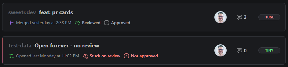 The Pull Request cards have been redesigned to better display when an Pull Request needs attention.